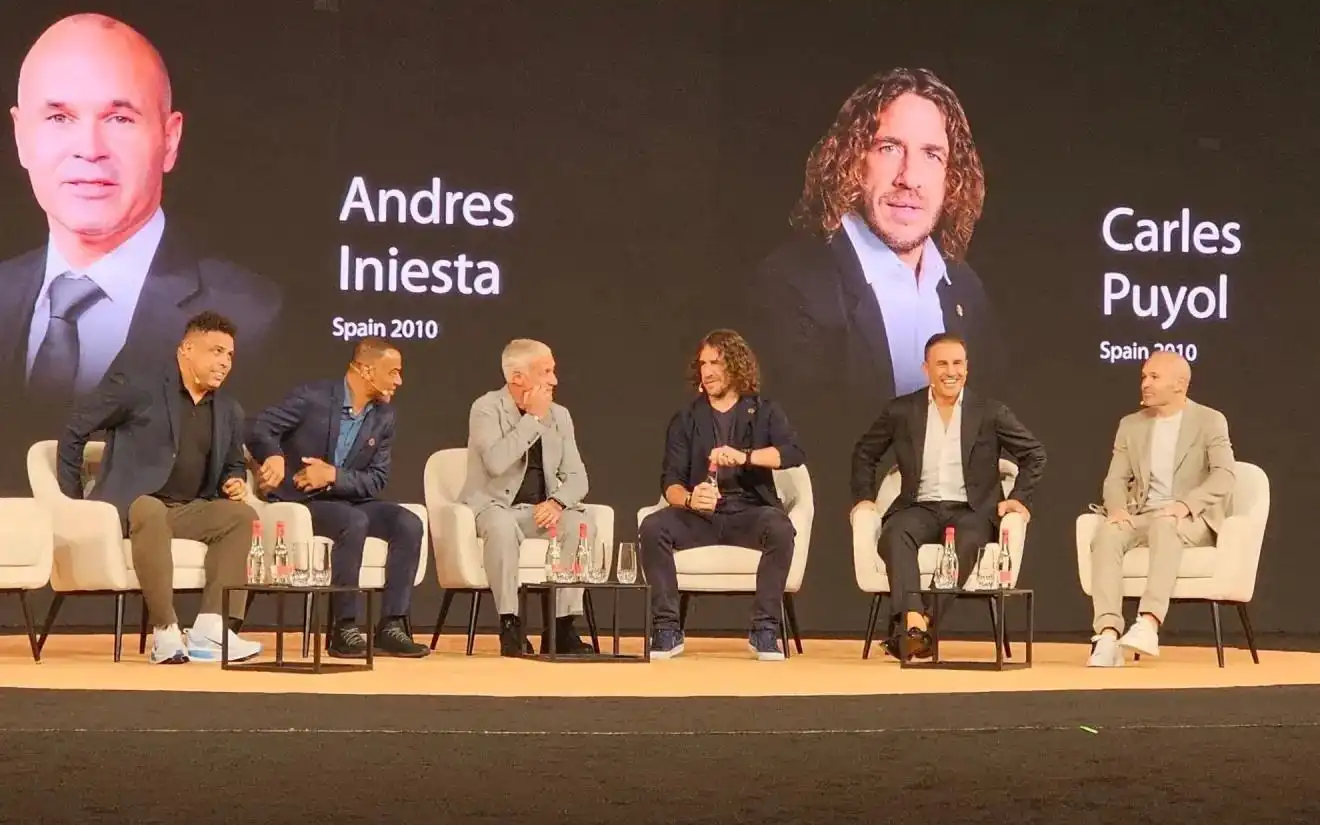 近日,在迪拜举行的世界体育峰会闭幕式上,一张堪称经典的合影定格了足坛传奇的一幕——普约尔、伊涅斯塔、卡福、法比奥-卡纳瓦罗、罗纳尔多以及迪迪埃-德尚六位世界杯冠军得主,在另一位世界杯冠军德尔-皮耶罗的主持下,展开了一场轻松而热烈的对话。