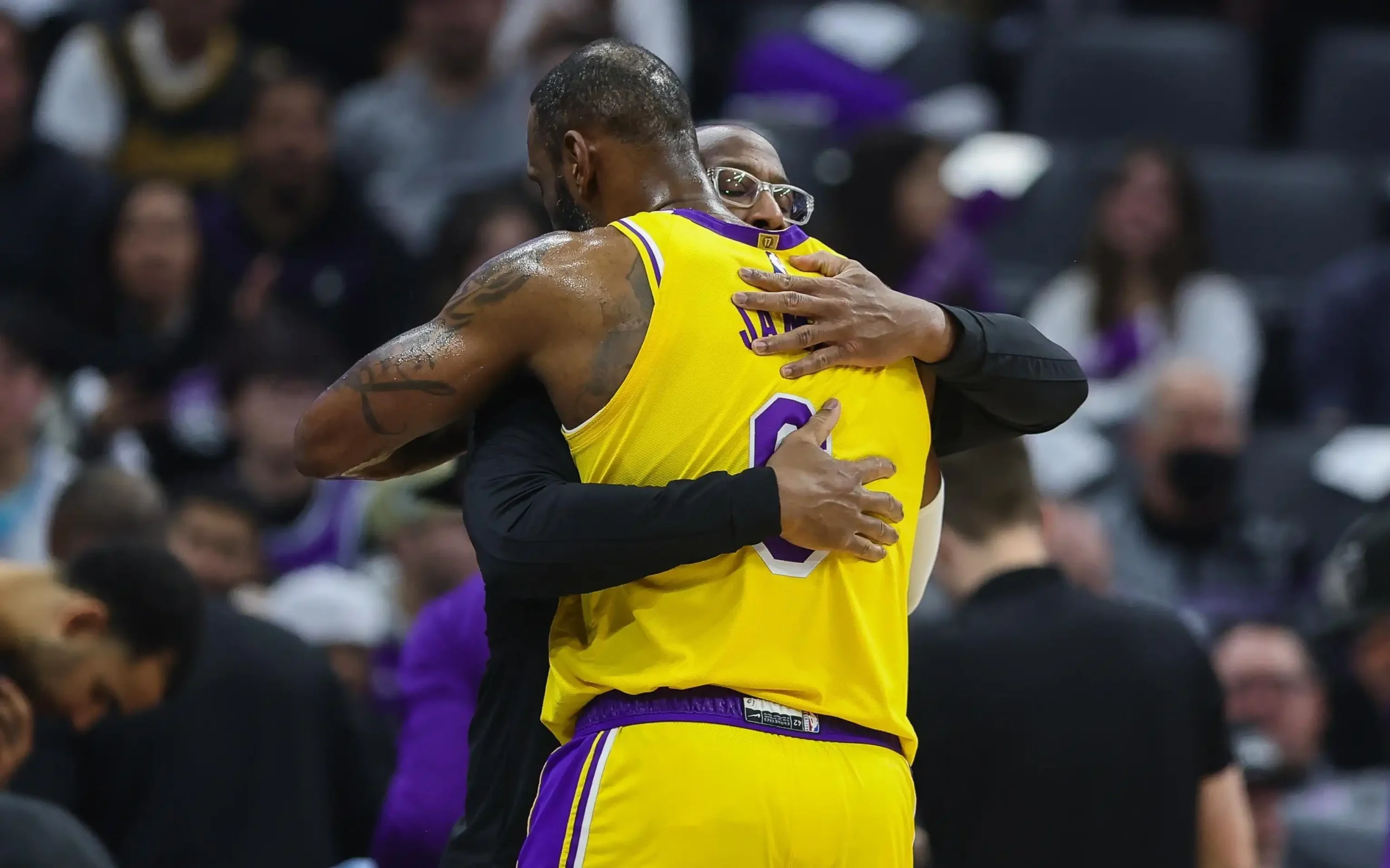 你曾与许多伟大的球员并肩作战,但从未与勒布朗-詹姆斯同队。在比赛中,你有机会和他交谈过吗?