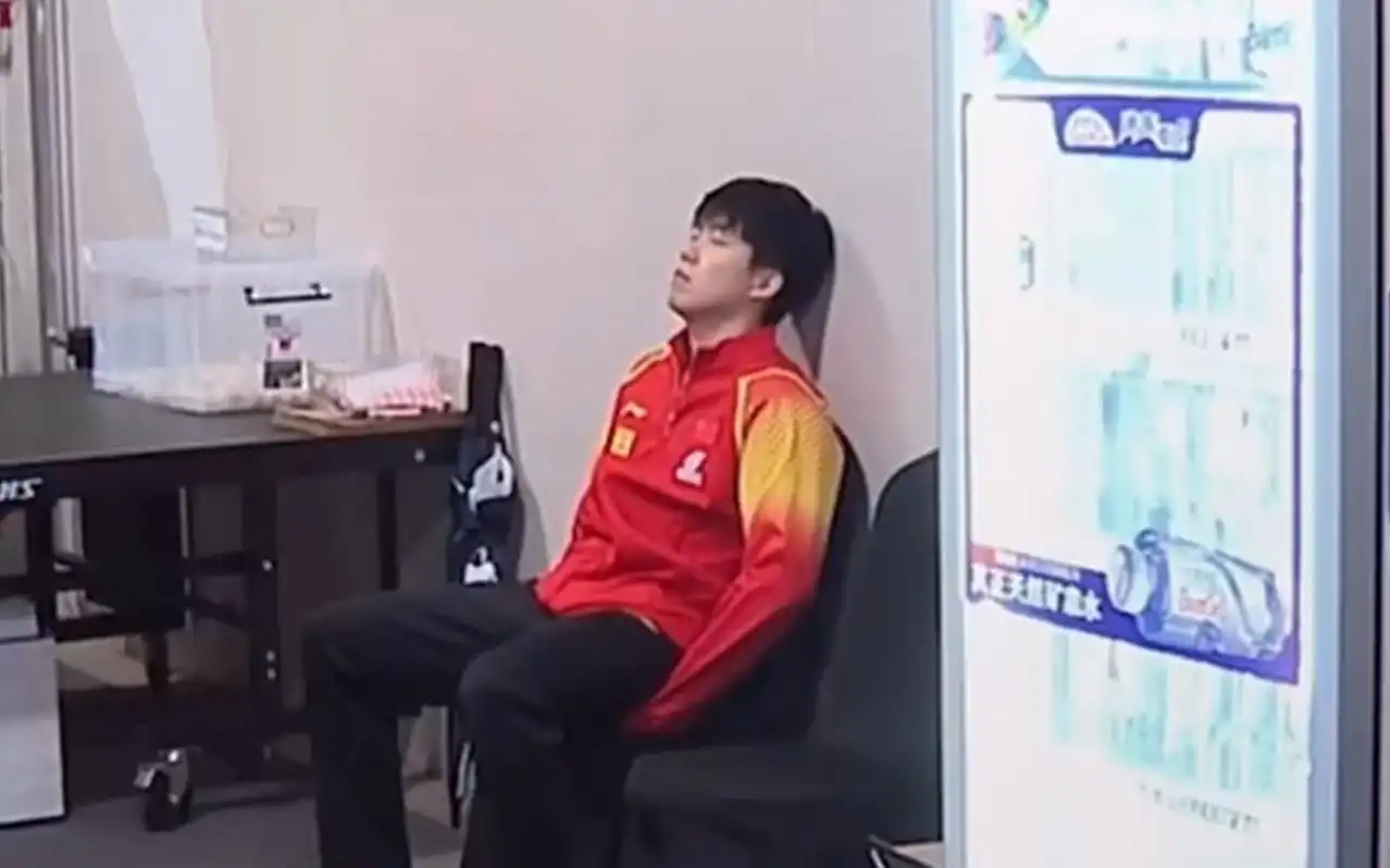 不过在赛后颁奖典礼和发布会的时候,王楚钦还是没什么表情了,可能象征性的笑一下,其他时间王楚钦基本上都是板着一张脸,确实笑不出来,太累了。所以看到这样的画面,足以证明他的疲惫。即便现场很吵,灯光很亮,躺下就能直接睡着了。