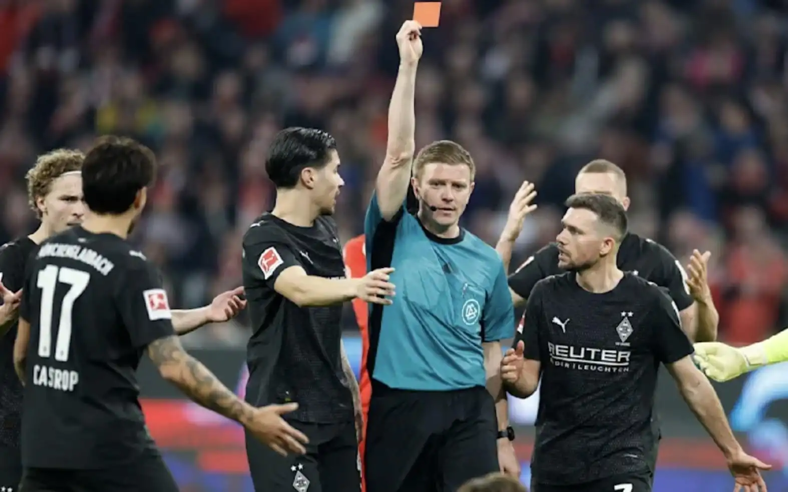 北京时间3月7日,德甲第25轮,拜仁慕尼黑4-1门兴格拉德巴赫。比赛第55分钟,主裁判罗伯特-施罗德在门兴球员赖茨与拜仁前锋雅克松的一次对抗后,将赖茨直接罚下。