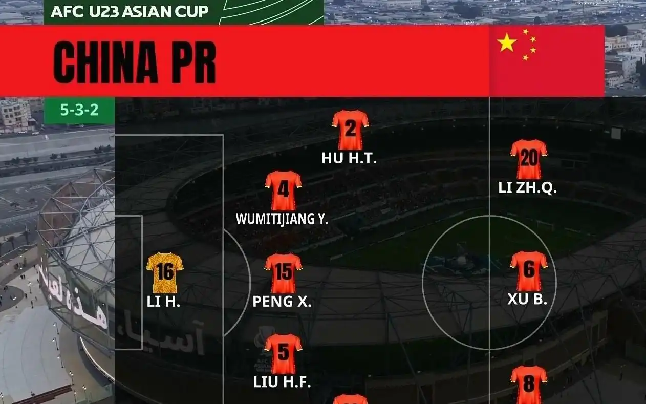 U23国足开场阵型有变,从官方4-2-2阵型调整回为5-3-2阵型